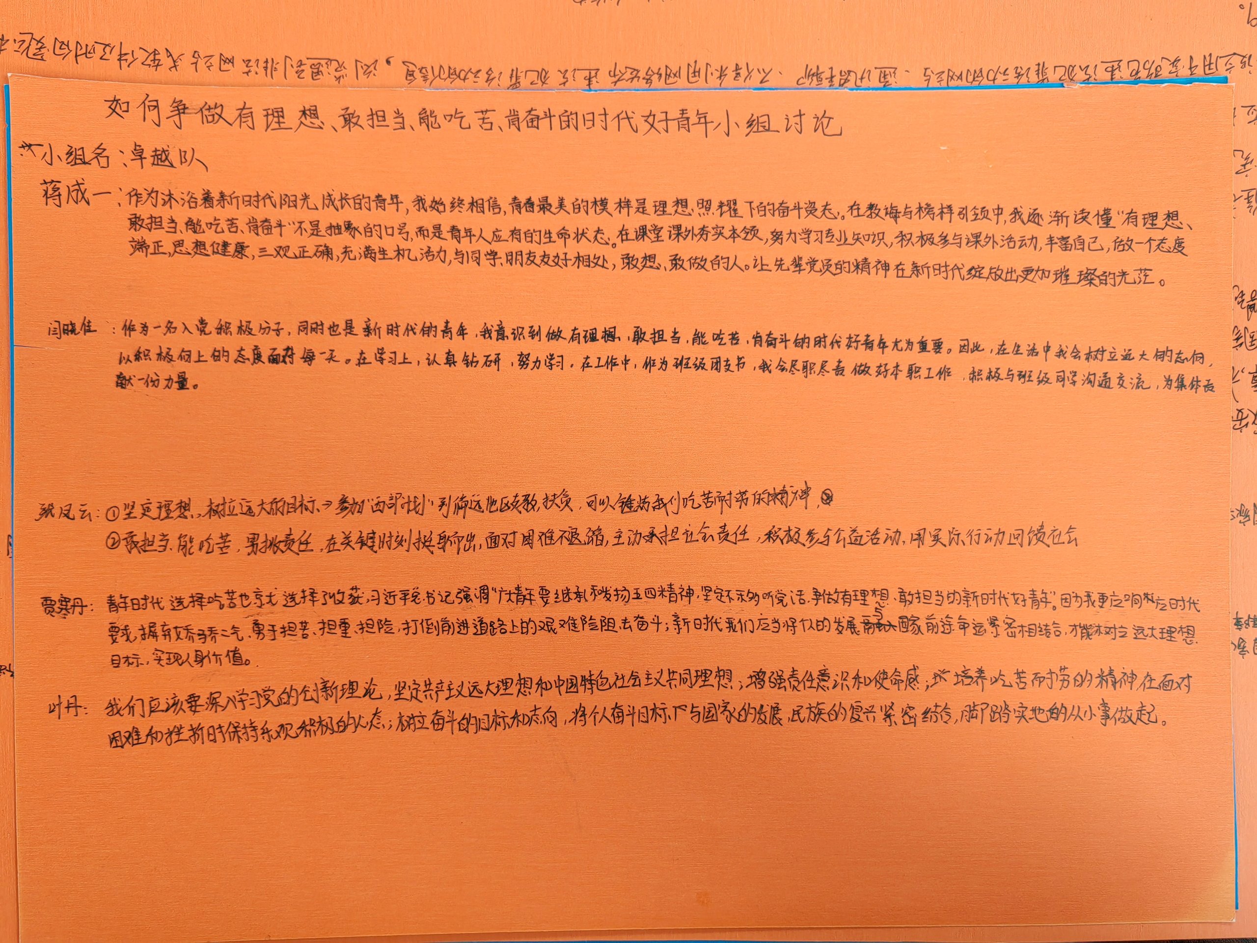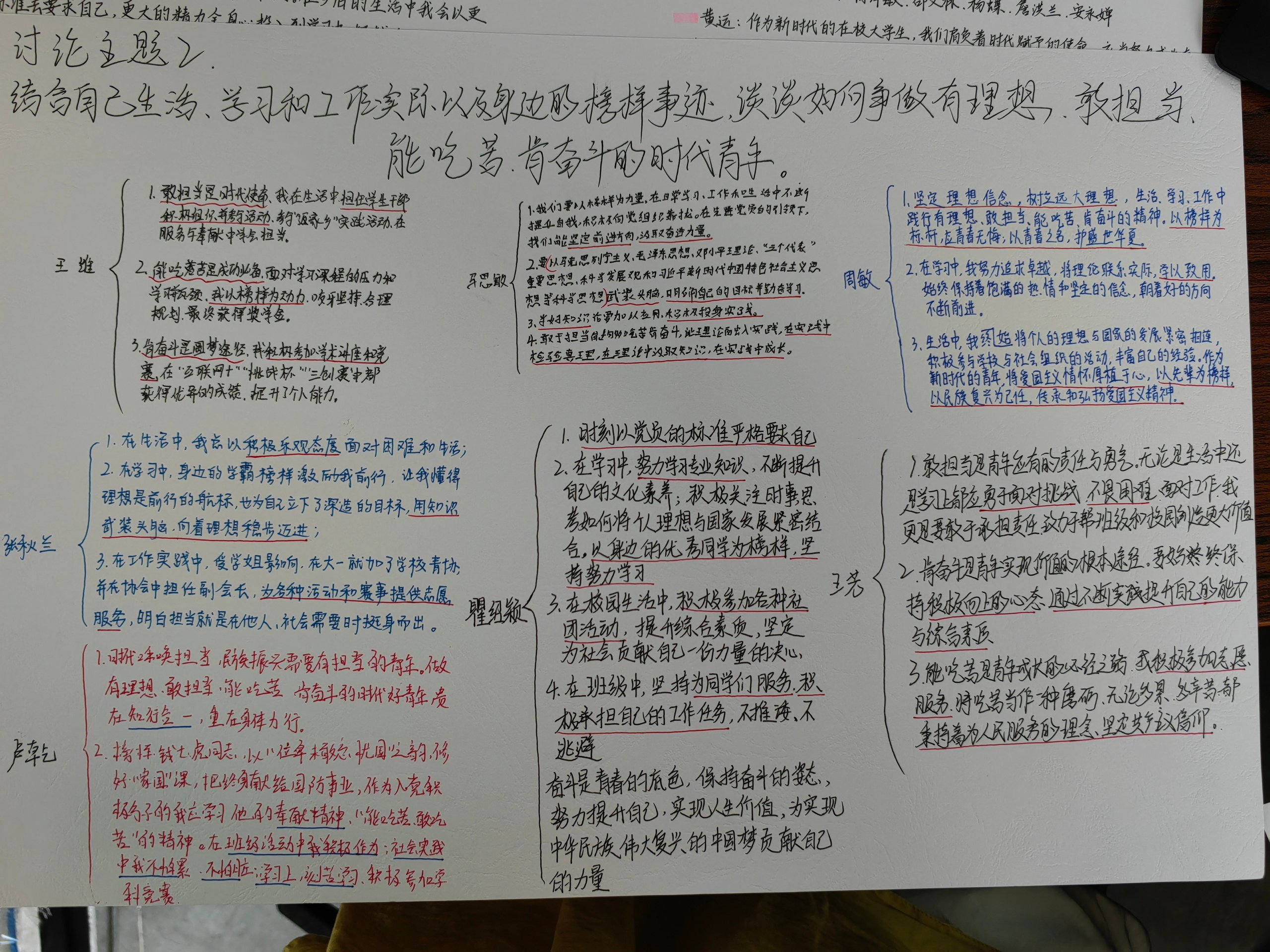 讨论会现场氛围浓厚,大家展示了自己心中的榜样是如何在各自岗位上充分发挥先锋模范作用,他们是身边的亲人、是孜孜不倦的老师、是电视上的功勋人物,但都在各自岗位上全心全意为人民服务。