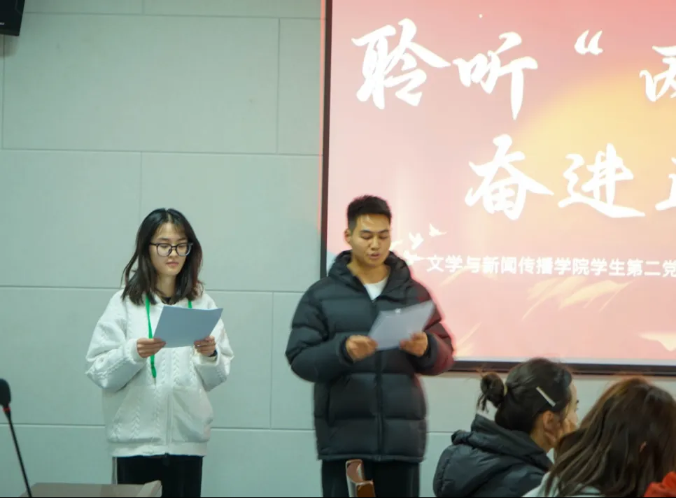 2025年全国“两会” 作为“十四五”规划收官之年和全面深化改革的关键节点,聚焦经济高质量发展、科技创新、民生改善等核心议题。为引导党员及入党积极分子深入学习“两会”精神,从专业视角解读“两会”内容,进一步发挥党员的先锋模范作用。3月28日,文学与新闻传播学院学生第二党支部在师德楼305会议室成功举办“聆听‘两会’声,奋进正当时”主题党日活动。我院学生第二党支部书记杨莹及学生第二党支部成员参加此次活动,并由范菁菁、赵远腾同志主持。