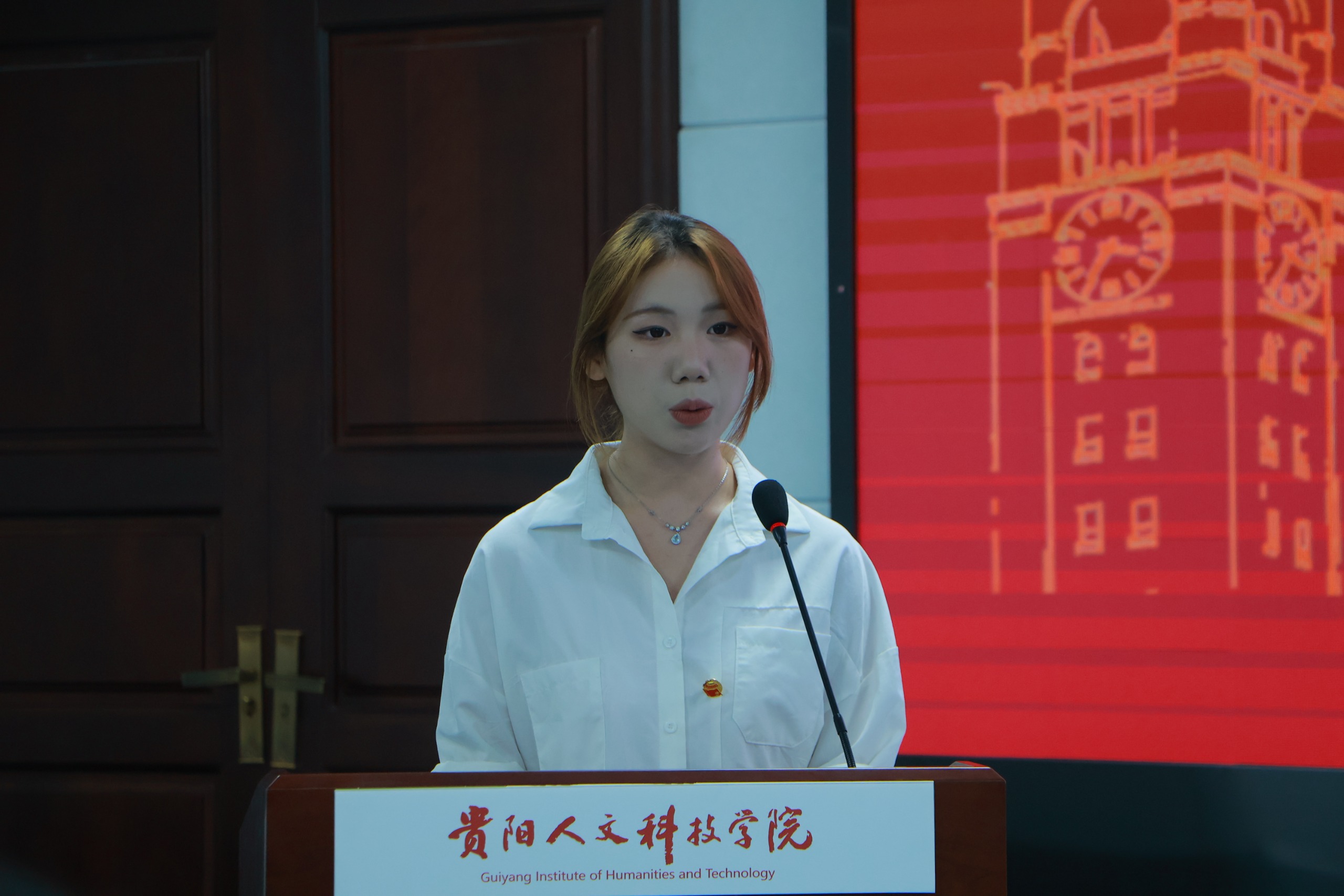 随后,新一届学生会主席团代表柯语从学生会职能定位出发,进行履职表态。她强调,学生会将始终坚守 “服务同学” 的根本宗旨,通过创新活动形式吸引更多同学参与、加强部门协作提升工作效率,努力打造更具凝聚力与影响力的学生会组织,切实为同学成长成才与学院发展建设赋能。