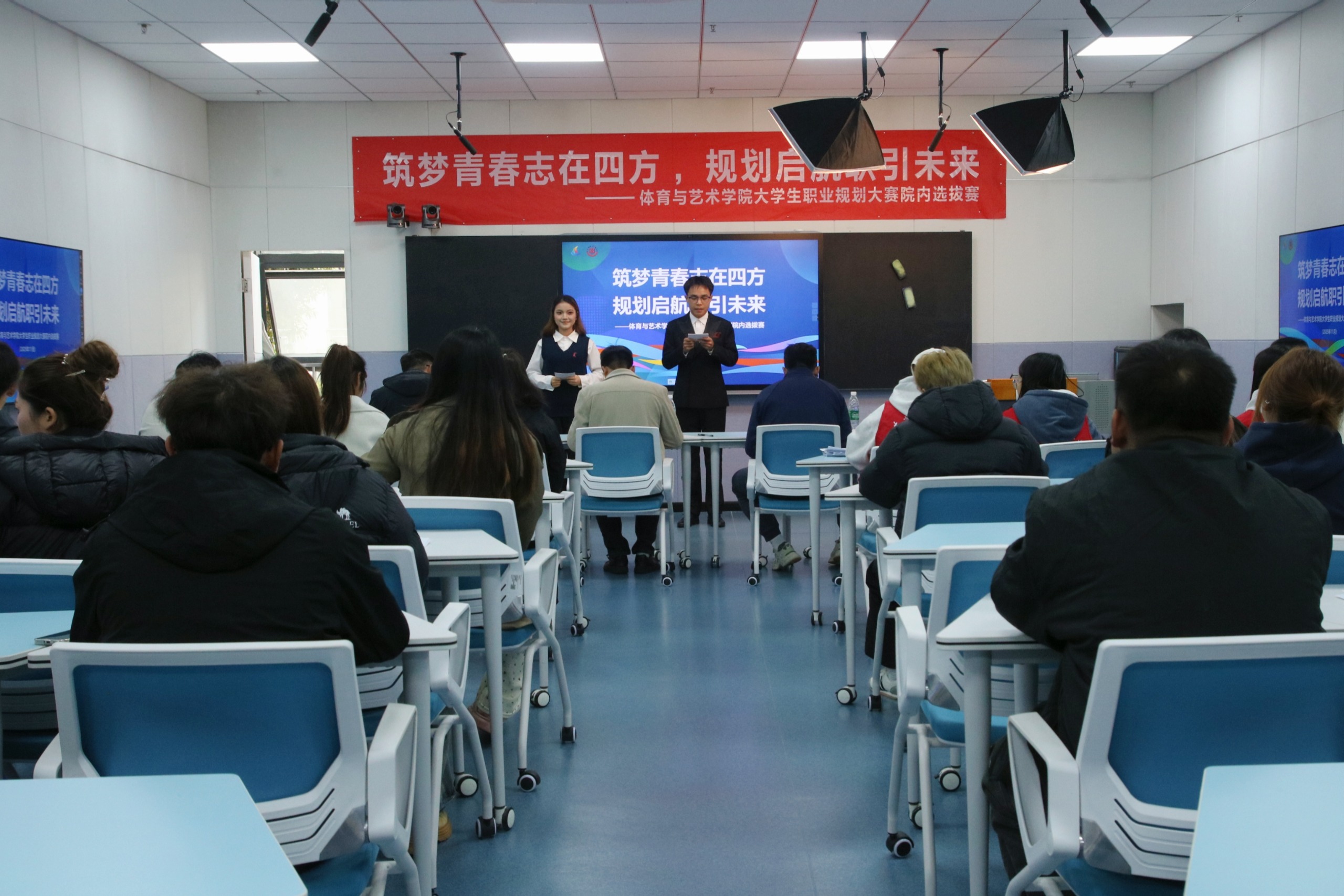 为帮助学生树立科学的职业观,提升就业竞争力,更好的选拔优秀选手参加学校第三届大学生职业规划大赛。11月18日,体育与艺术学院在师德楼2楼智慧教室开展“筑梦青春志在四方 规划启航引领未来”大学生职业规划大赛院内选拔赛”。