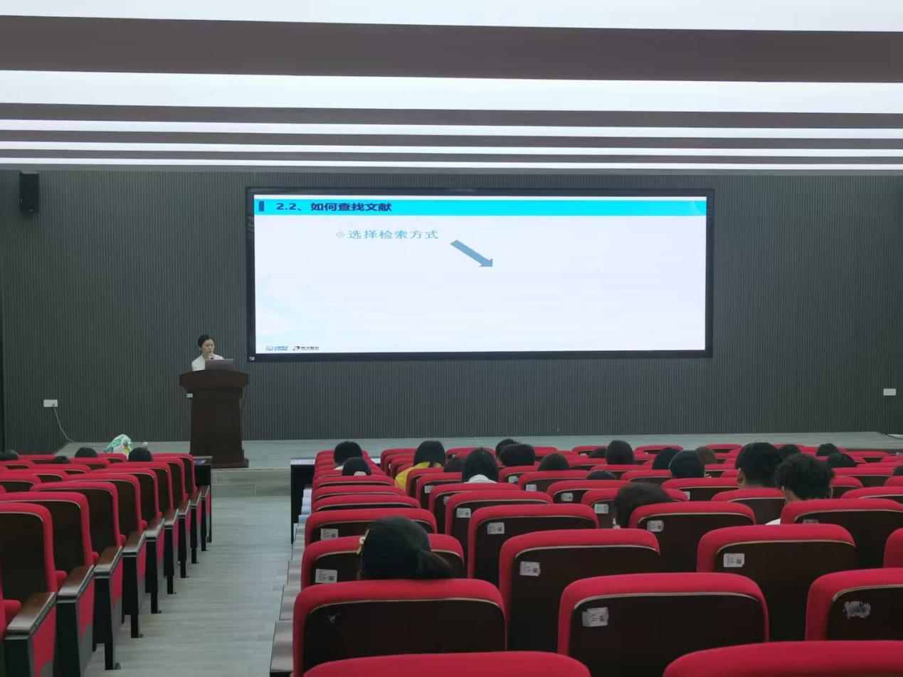 图书馆读者服务部部长詹小芳、办公室副主任岑光油系统地介绍了图书馆的基本概况、馆藏资源、空间布局及主要服务内容,并重点讲解图书馆微信公众号的功能、研修室预约流程以及各类阅读推广品牌活动。充分调动新生的阅读兴趣,引导大家积极走进图书馆、善用图书馆,逐步培养“爱读书、读好书”的良好习惯。
