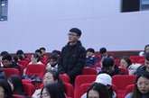 讲座开始,唐教授以“为什么中国共产党能在历史洪流中屹立百年?”的问题拉开了讲座的序幕,并就此问题与同学们进行亲切互动。大信学院张玉洋同学踊跃参与,其就“党与群众能够始终保持血肉联系”的回答,获得了唐建荣教授的高度赞许。