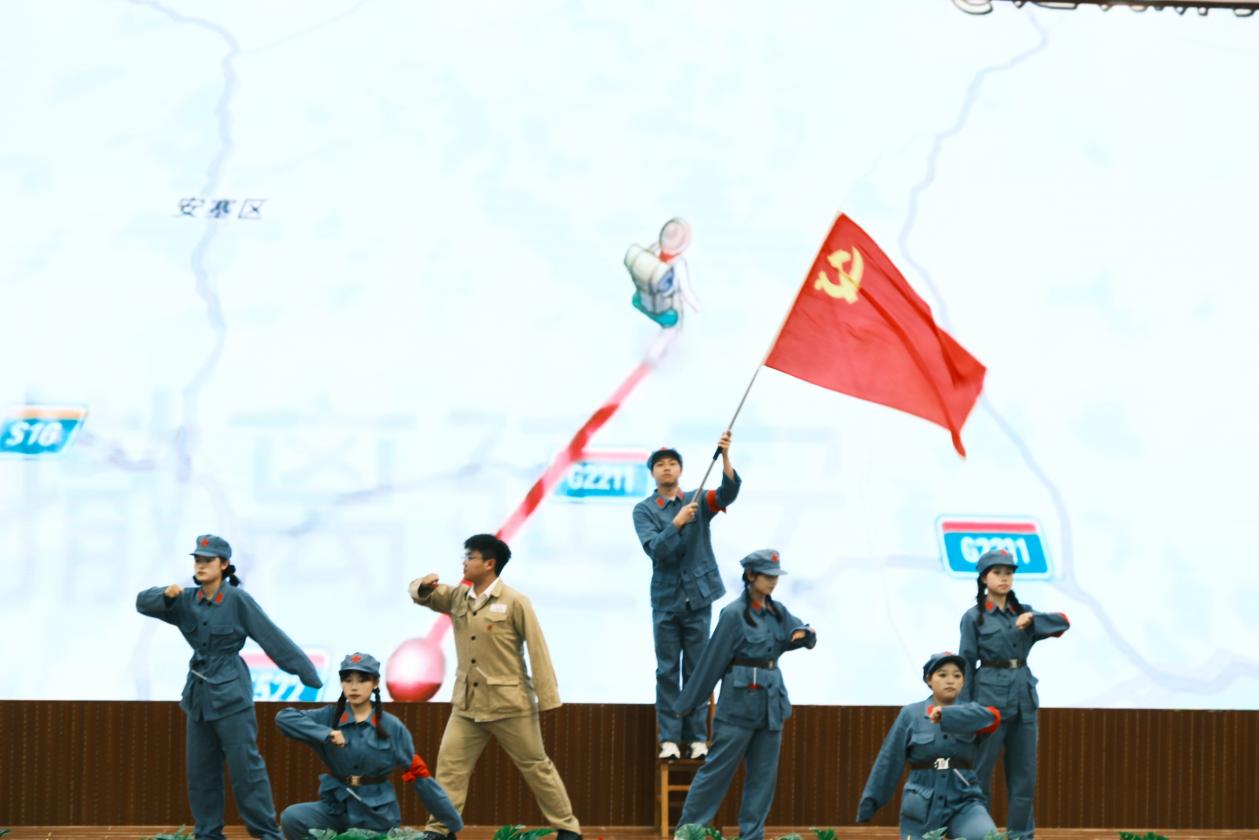 活动在雄壮的序曲中拉开帷幕。马克思主义学院院长周剑云致开幕辞,他指出,毛泽东诗词是时代精神的火炬,吟诵毛泽东诗词是思政课实践教学的创新载体,将理论转化为生动实践,引导学生感悟毛泽东思想的核心价值。历经复赛56支队伍的激烈角逐,最终12支优秀团队脱颖而出进入决赛,以多样化形式展现诗词魅力。表演融合传统与现代元素:既有激情澎湃的“唱歌+诵读”演绎《沁园春·长沙》,展现“指点江山,激扬文字,粪土当年万户侯”的豪情壮志;又有创意十足的“演剧+诵读”诠释《七律·长征》,重现红军长征的坚韧精神;还有京剧唱腔结合剧本的创新编排,彰显了《五律·张冠道中》《五律·喜闻捷报》所蕴含的在艰苦环境中的坚定意志和对历史的深刻思考。丰富多彩的节目赢得掌声不断,现场洋溢着浓厚的红色文化氛围。