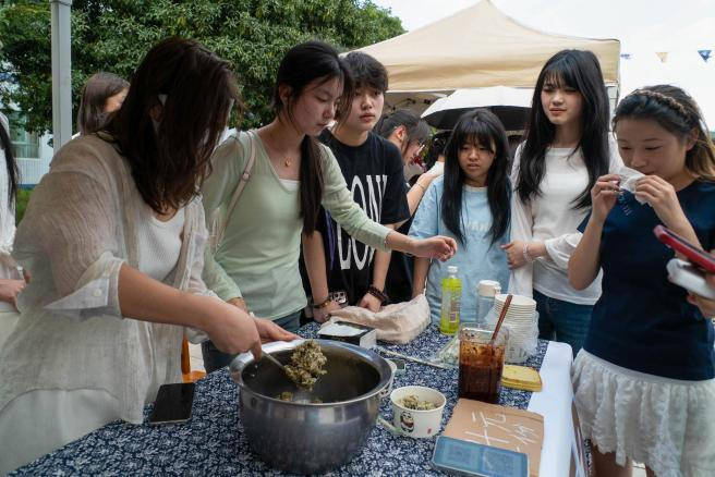 在民族小吃区,苦荞酥饼在石板上烙出云片,酥油茶盏里盛满雪山的体温,清明饭的竹香漫过铜锅,各民族炊烟里的诗篇正在味蕾上交织与融合。在民族米酒区与糯食区,白白胖胖的糯米在岁月的长河中演化出了糯米饭、清明粑、糯米酒等多样美食,师生共同品鉴传统的酿造技艺,感悟中华民族大家庭多元的饮食文化智慧。在民族服饰展区,苗绣图腾、藏袍广袖、银绣墨华……同学们试穿体验各民族服装、拍照打卡,中华民族衣锦的美学正在年轻血脉中苏醒。