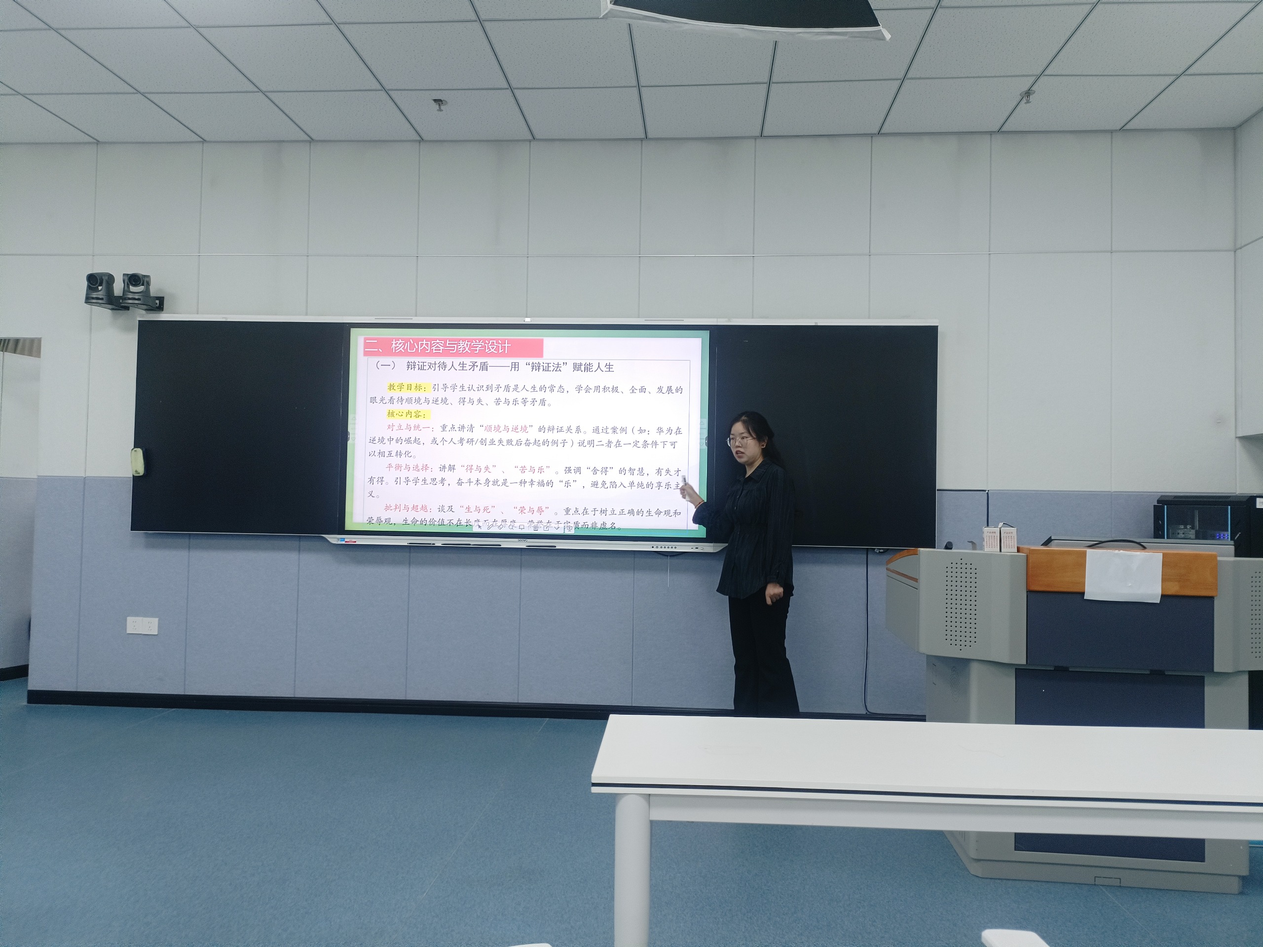 杨豪主任对实践教学的时间、形式、成绩占比等提出了要求,王芳老师公布了实践教学方案。在集体备课阶段,李仁芳、王芳两位老师分别就《思想道德与法治》第一章第二节和第三节分享备课心得,强调要结合学生实际,选用学生熟知的案例资源,增强亲近感和说服力,同时对教材知识点进行重组,把道理讲深讲透讲活。