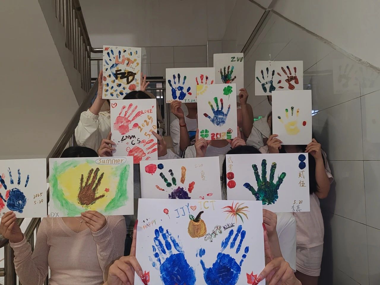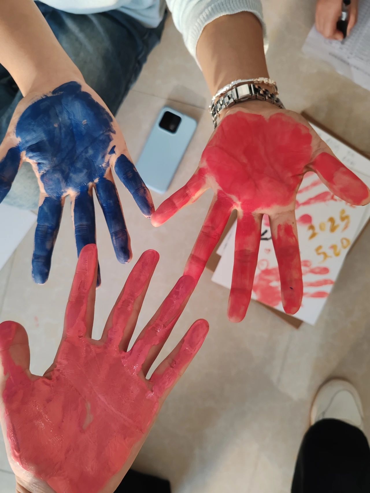 在朝气蓬勃、阳光正好的五月,我们迎来了一个充满爱意的日子——5月25日,大学生心理健康日,“5.25”谐音“我爱我”,寓意着关爱自我、了解自我、接纳自我。为了让每一位同学都能深刻体会这份爱意,伟德国际1949官网2023级大数据一班团支部特别举办了一场别开生面的“我爱我”主题团课活动,用彩色颜料在纸上印手掌,开启了一场与自我对话的奇妙旅程。