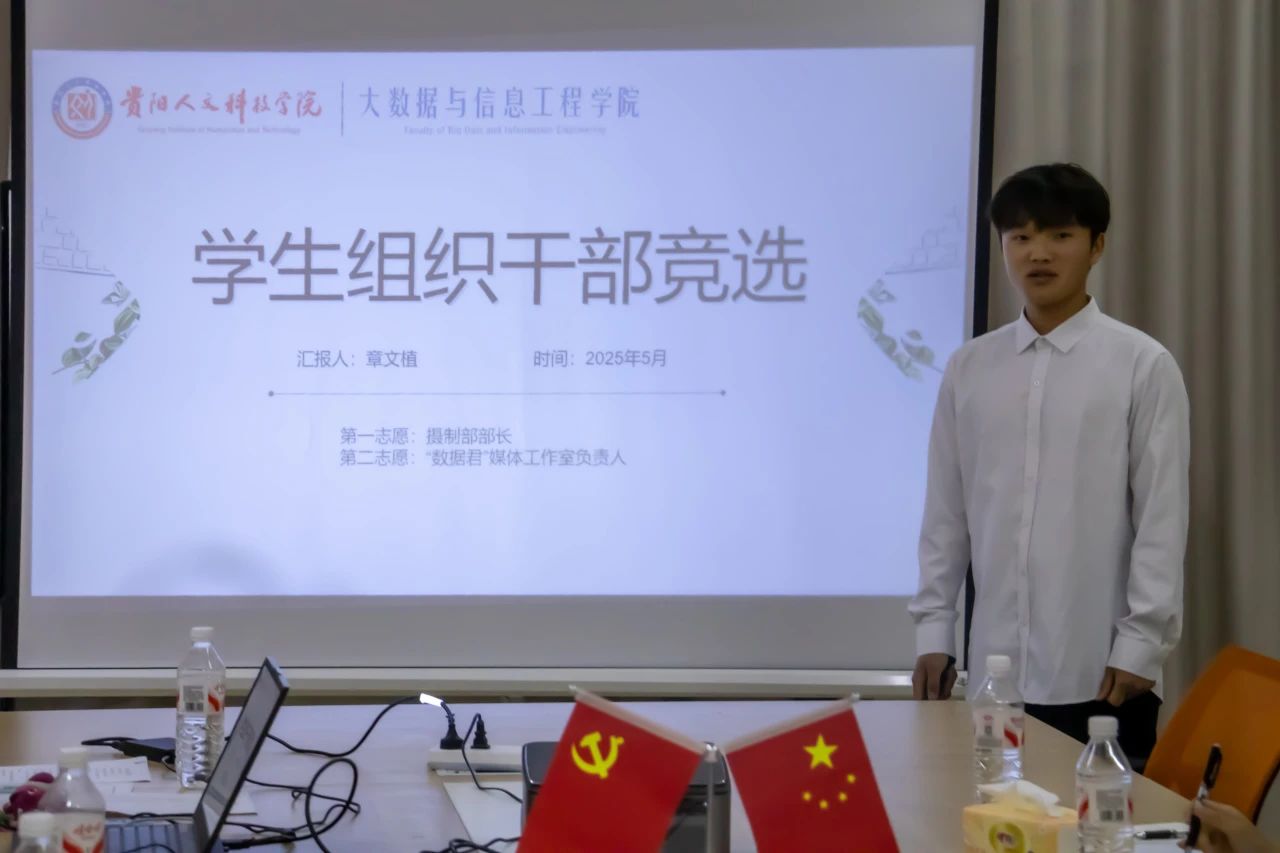 为进一步加强学生组织建设,选拔出能力出众、富有担当的学生骨干,推动学院学生工作蓬勃发展,传承学生组织的优良传统与精神,2025年5月23日14:00,我院四大学生组织在科研楼701召开了大数据与信息工程学院2025-2026年度第八届学生组织换届竞选大会。