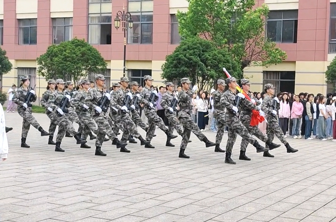 6时50分,伴随着铿锵有力的口令声,国旗护卫队迈着正步护送国旗走向旗杆。队员们身姿如松、目光如炬,银枪在晨曦中折射出凛然光辉。当《义勇军进行曲》的雄浑旋律响彻广场,鲜红的五星红旗迎风舒展,全体师生齐唱国歌,行注目礼。晨风中,不少同学眼眶微湿,胸中激荡着“强国有我”的使命担当。