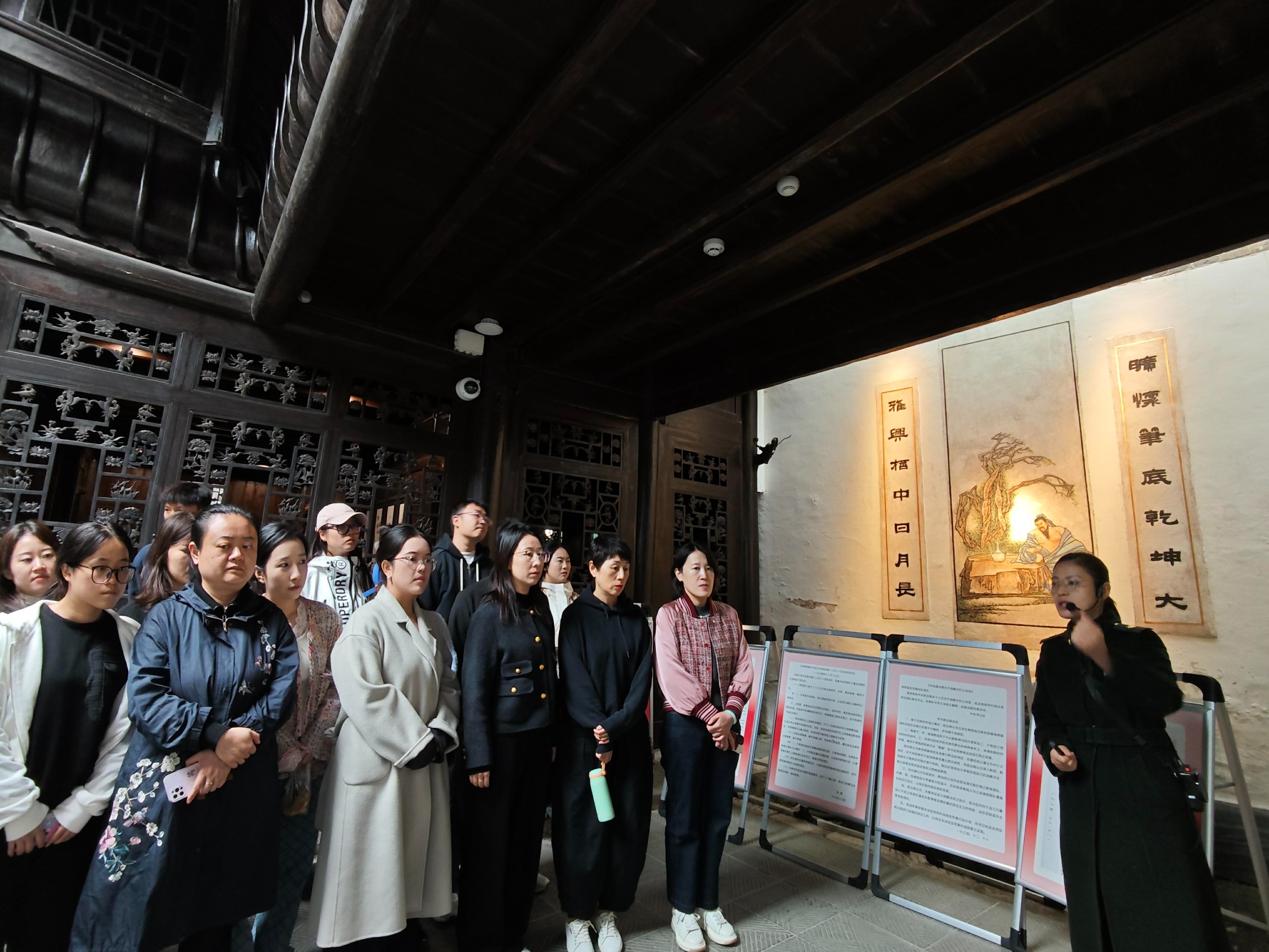 走进会址,珍贵的革命文物、详实的历史图片、生动的场景还原,全方位展现了黎平会议“决定转兵、挽救红军”的关键历程,让党员们直观感受党在长征途中攻坚克难、实事求是、勇毅前行的奋斗精神。参观过程中,讲解员结合“三个第一次”的历史背景、实践过程,细致讲解会议召开的时代意义与对中国革命进程的深远影响,党员们不时驻足凝视、交流感悟,深刻体会革命先辈们坚定的理想信念与无畏的牺牲精神。