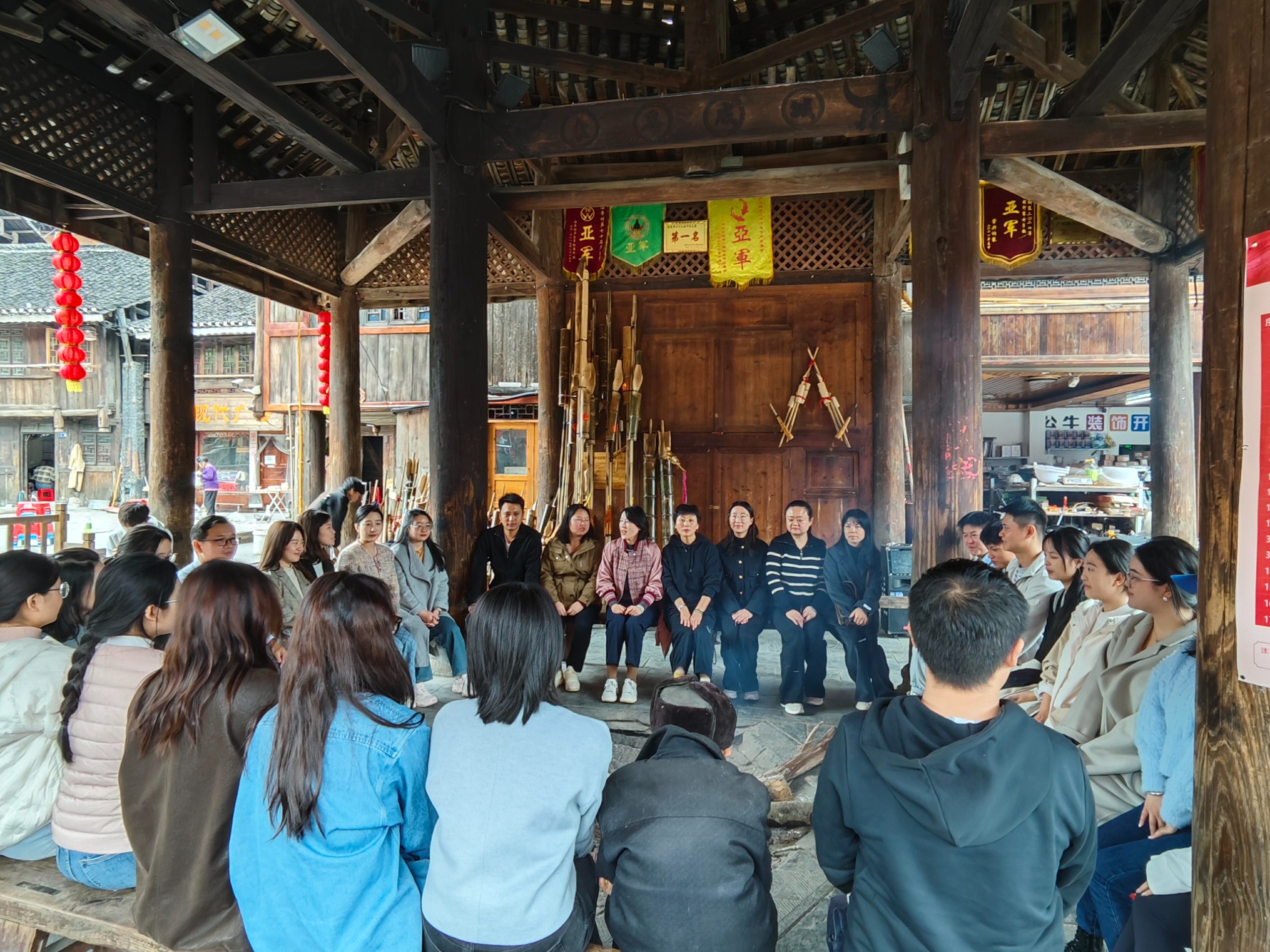 黎平会议会址参观结束后,我院党委书记田丹紧随习近平总书记的步伐,来到侗寨鼓楼下为教师党员现场讲党课。党课主要以“传承长征精神,赋能教育教学”为核心,结合黎平在长征历程中的战略意义,深入解读习近平总书记关于教育、党建工作的重要论述,同时联系学院教学科研、学科建设实际,引导教师党员思考如何将红色精神融入课堂教学、科研攻关与地方经济服务中,把初心使命转化为提升育人质量的具体行动。党员们围坐在鼓楼之下,认真聆听、积极交流,在民族文化与红色精神的交融中,进一步坚定了为学院高质量发展贡献力量的决心。