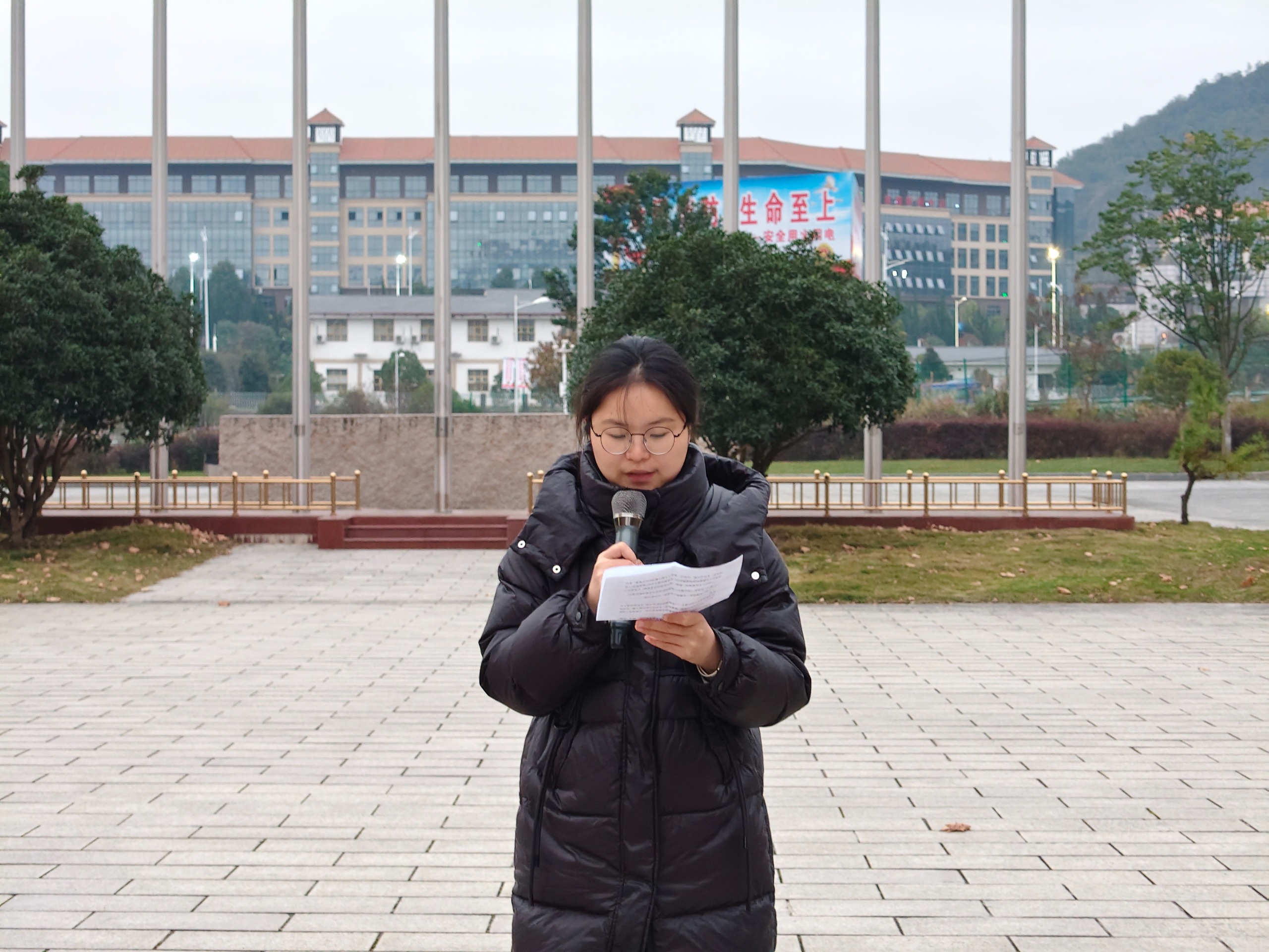 11月24日早晨,经济与管理学院在大学城校区中心广场隆重举行升旗仪式。本次升旗仪式由青年教师代表杨天凤老师、学院全体学生和国旗护卫队共同参与。