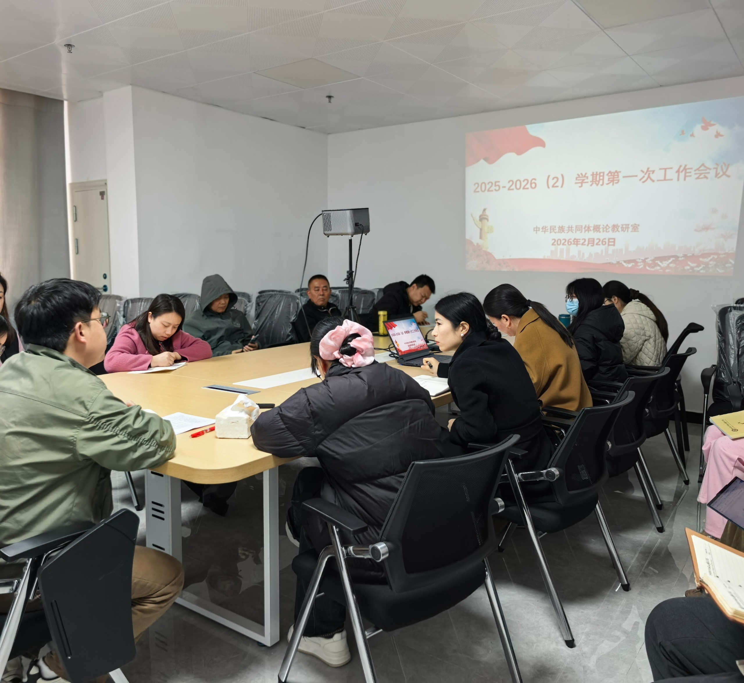 为规范教学管理、提升课程质量,2月26日,中华民族共同体概论教研室召开新学期第一次工作例会。教研室主任杨豪主持会议,全体教研室人员参会。