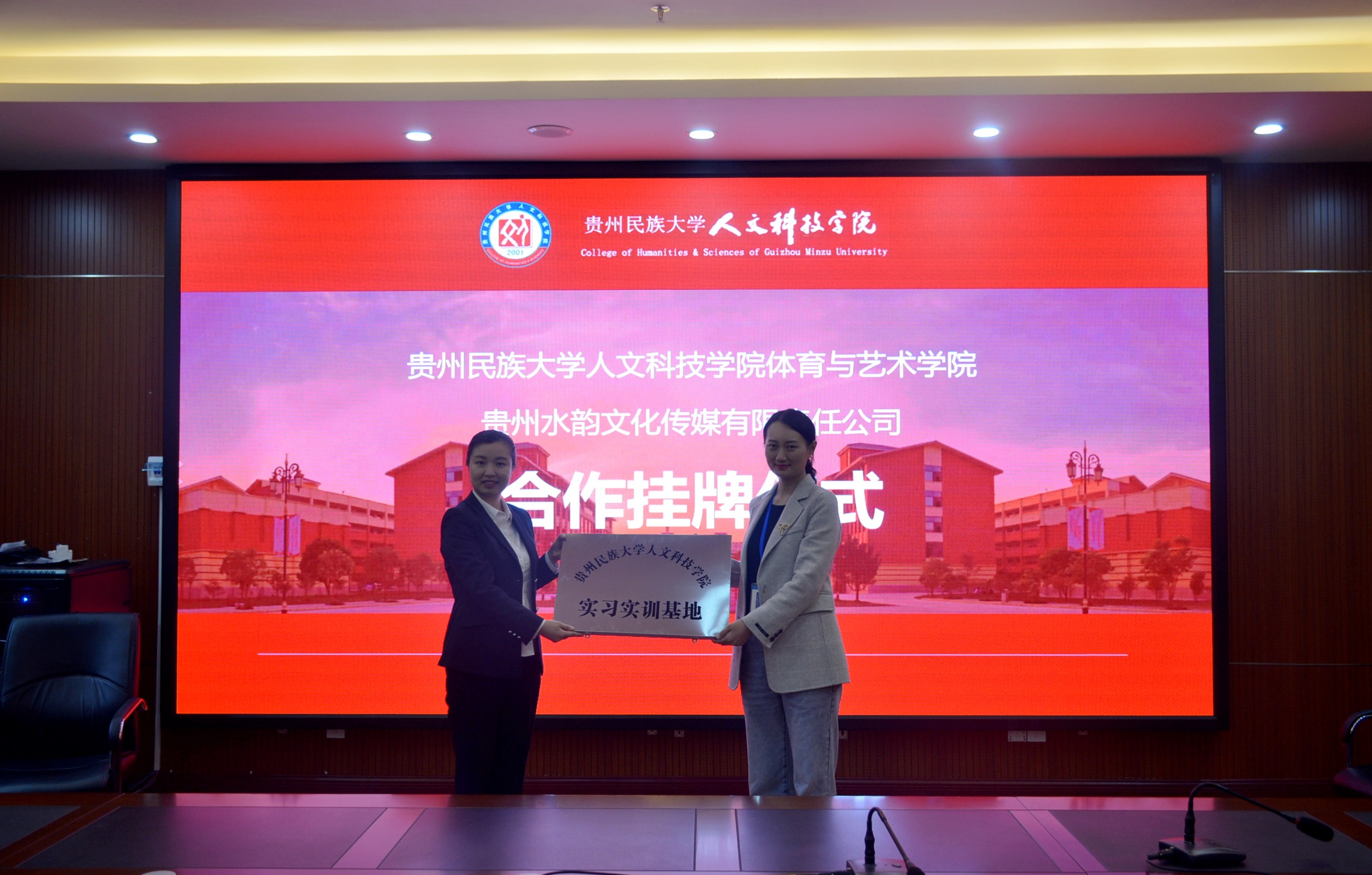 伟德副校长左丹代表学校为贵州水韵文化媒体有限责任公司进行授牌