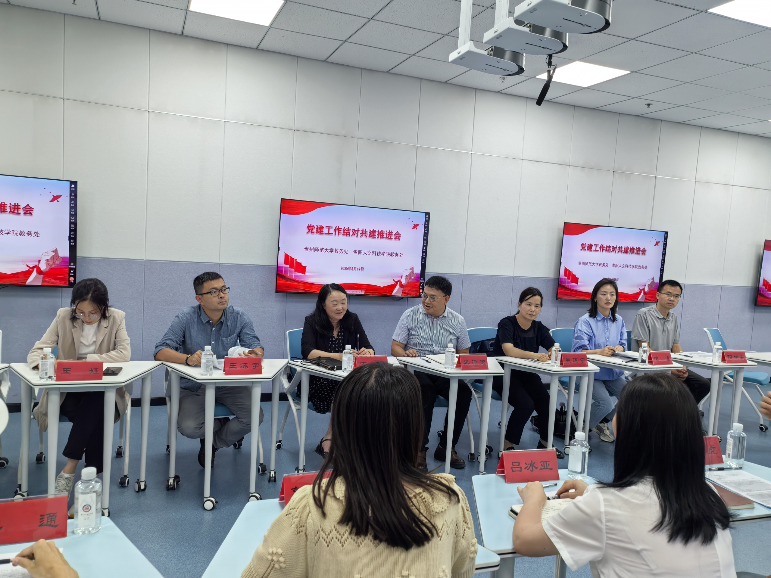 6月19日,贵州师范大学教务处与伟德国际1949官网教务处党建工作结对共建推进会在伟德师德楼201智慧教室召开,伟德国际1949官网教务处处长李纯虎主持会议,对贵州师范大学教务处冉源懋处长、支敏处长一行到访表示热烈欢迎。此次会议旨在通过党建引领深化两校教学管理、师资培训、资源整合等领域的合作,助力伟德国际1949官网顺利通过合格评估,并推动双方教育教学质量协同提升。