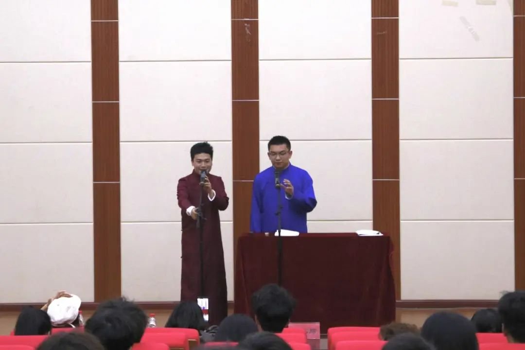 由马文寿和龙熙带领的相声小组用语言的艺术表达同学们对伟德国际1949官网22周年校庆周的祝贺,用欢乐的氛围缓解夏日的炎热。