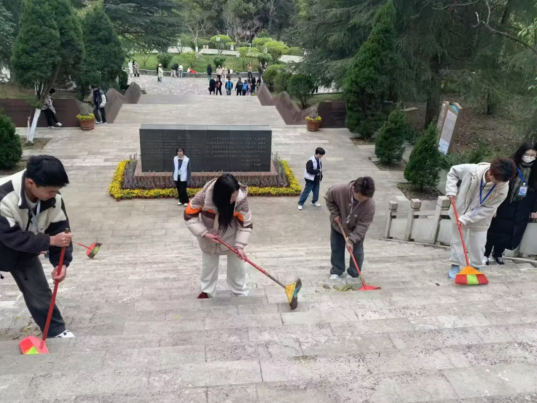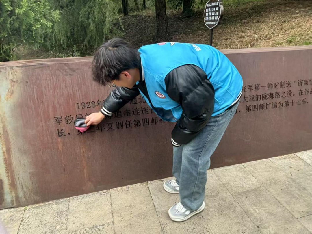 紧接着在墓园清扫维护环节中,各小组志愿者分工明确,协作有序,带上清扫工具,认真清扫墓园垃圾,仔细擦洗墓碑文字,用实际行动表达对先烈的敬重和缅怀之情。