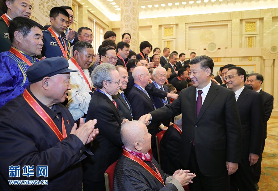 庆祝大会结束后,习近平等会见了受表彰人员及亲属代表,并同大家合影留念。