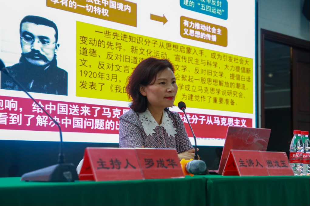 9月7日下午,伟德马克思主义学院在大学城校区组织开展了“开学第一课”系列讲座之当代青年要从学习党史和党的二十大精神中汲取坚定理想信念的力量。此次讲座由副校长周凌玉主讲,马克思主义学院副院长罗成华主持,全校近200名学生参加。