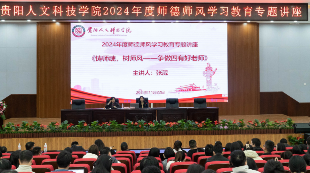 为深入贯彻落实习近平总书记关于教育的重要论述和党的教育方针,完善教师思想政治和师德师风建设工作,培养师德高尚、业务精湛、教学高效的教师队伍,提高师德情操和职业道德意识。11月22日,伟德举办2024年度师德师风学习教育专题讲座——《铸师魂,树师风——争做四有好老师》,邀请贵州师范大学人事处处长张葳到校为全校教师作师德师风专题讲座。