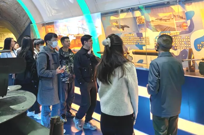 4月11日,文化旅游与区域发展学院教工支部全体党员在党组织引领下,前往贵阳黔灵山公园开展“缅怀革命先烈·弘扬爱国精神”主题党日活动。活动伊始,贵阳市人防科普教育体验馆馆长龙兴旺同志带领大家先后参观了人防发展陈列厅、黔籍抗战老兵慰问室等展厅,详细介绍抗日战争时期贵州籍参战部队的情况,分享了抗日战争时期感人的红色故事。在体验馆内,党员同志们在展厅的图片和实物前不时驻足凝视、感悟沉思,通过一张张黔籍战士抗战的老照片,一件件国防武器装备展品,一个个老贵阳百姓的生活场景,深切感受了我国国防和军队建设取得的伟大成就,深刻理解了和平与安全的来之不易。