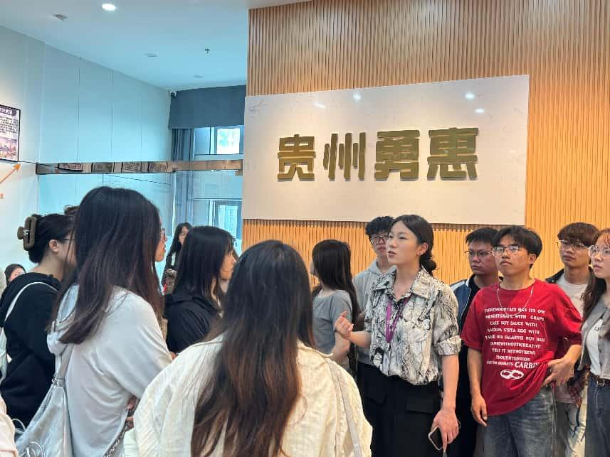 上午,师生们首先抵达贵州勇惠商业管理有限公司。在企业相关负责人的热情接待下,学生们参观了公司的办公环境,了解了企业的组织架构和日常工作流程。通过企业负责人的详细介绍,同学们对勇惠商业管理公司在新零售领域的运营模式、市场策略以及品牌建设等方面有了深入的认识。
