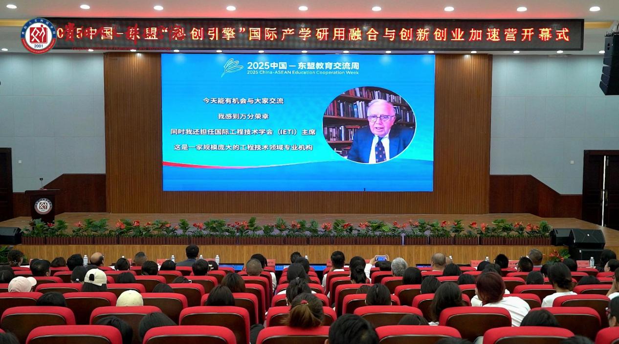 9月15日,在2025中国-东盟教育交流周系列活动——“科创引擎”国际产学研用融合与创新创业加速营开幕式后,英国牛津大学沃夫森学院院士、国际工程技术协会(IETI)主席James Crabbe应邀为伟德师生作线上专题讲座。James Crabbe院士围绕创新精神、跨国产业合作、前沿科研进展以及可持续发展等关键议题,与师生进行深入交流。