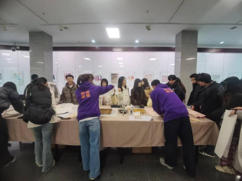 活动期间,学生团队在唐黎老师带领下,系统参观了展览各个板块,详细了解每件作品的创意来源、文化内涵与设计手法。在文创互动体验区,学生们亲身参与“顺”字创意等实践项目,近距离感受地域文化与现代设计的融合魅力。通过与展览策展人、部分参展设计师的交流,学生们深入探讨了文化 IP 市场化转化、乡村文创产品开发等关键问题,对“设计服务乡村振兴”的理念有了更深刻的认知。