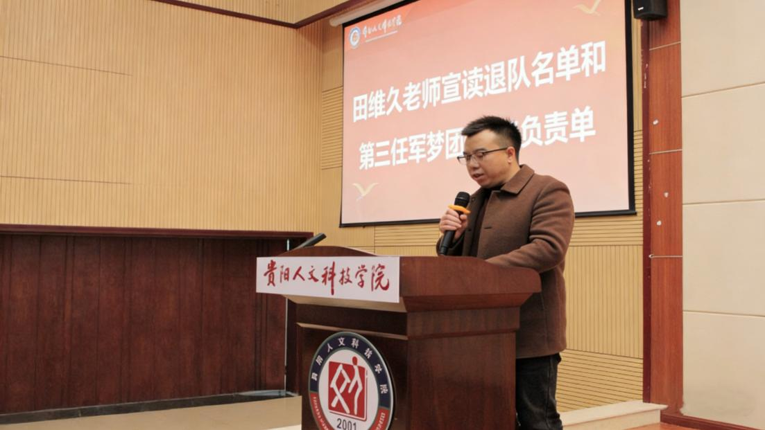 田维久老师宣读军梦团退队名单和新一届军梦团负责人名单