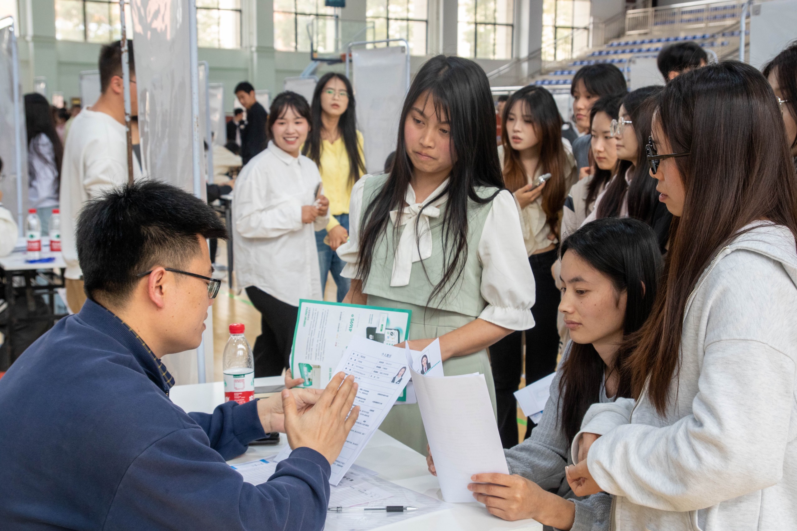 据悉,本次招聘会共邀请省内外企业80余家,提供岗位1800余个,涵盖教育、法律、通信、互联网、文旅、艺术和新媒体等多个行业,为毕业生提供了丰富的实习就业渠道,并同步开展线上直播带岗,对参展的单位进行一一介绍,方便未到场的毕业生云参加。据统计,本次招聘会共有3000余人次进行求职登记。