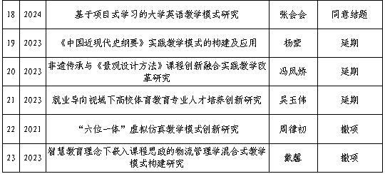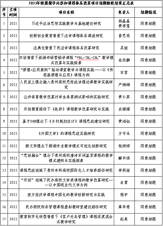 根据人文教字2025【79】《关于开展2025年校级教学内容和课程体系改革项目结题验收的通知》要求,教务处组织专家对各项目进行了结题验收。经专家组验收审查,同意以下18项项目结题、3项延期、2项撤项。现予公示,公示期为2025年11月25日至11月27日(共3个工作日)。如对验收结果有异议,请在公示期内向教务处反映。