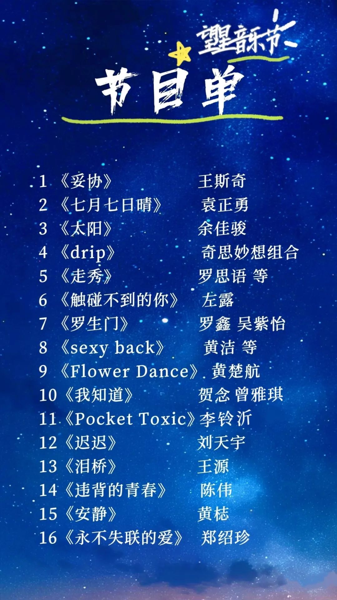 你是否曾在爱里挣扎,最后选择《妥协》?歌手会用怎样的嗓音唱出独属于这首歌的无奈与释怀。在《七月七日晴》的歌声里又会藏着夏天怎样的遗憾?七月的阳光炽热,而某些故事却悄然落幕。在音乐节的夜晚,伴着微风,一起沉浸在这略带伤感的旋律中,缅怀那些逝去的美好。更多精彩,邀您现场聆听!