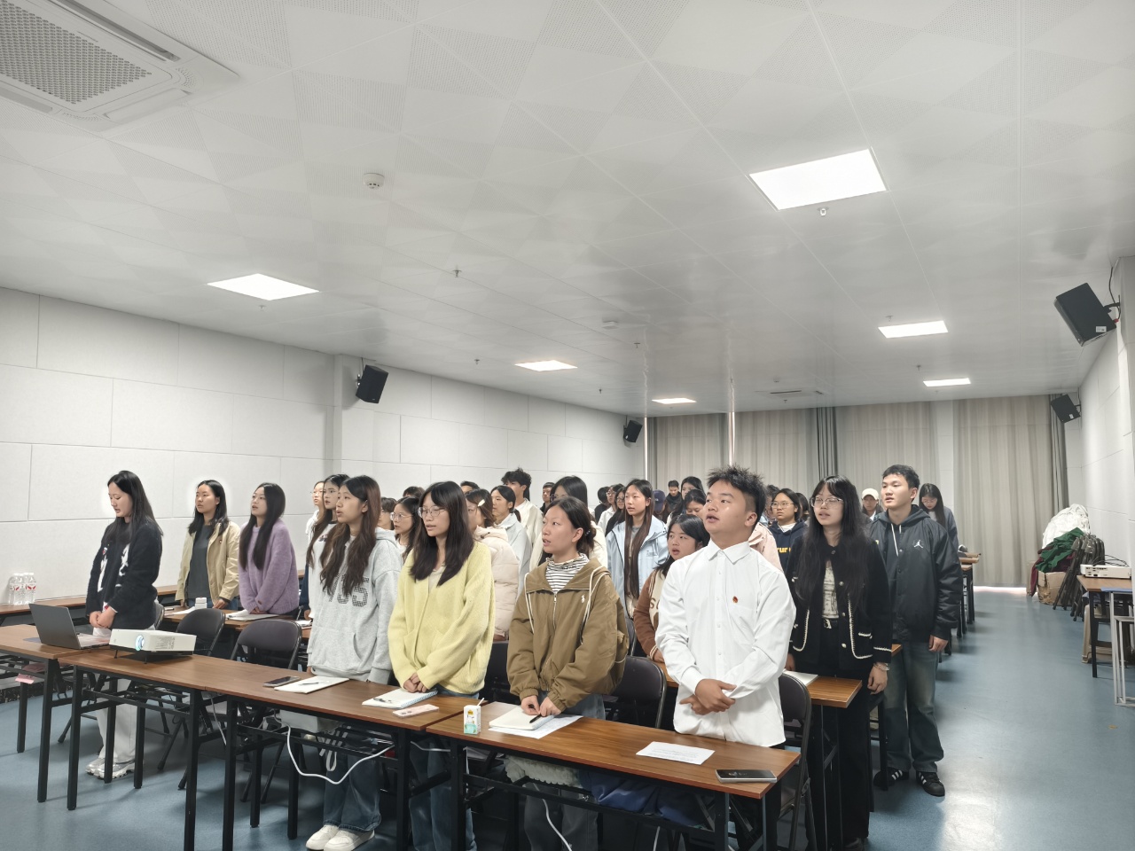 大会在雄壮激昂的《义勇军进行曲》中正式开始。全体参会人员肃立,齐声高唱中华人民共和国国歌。