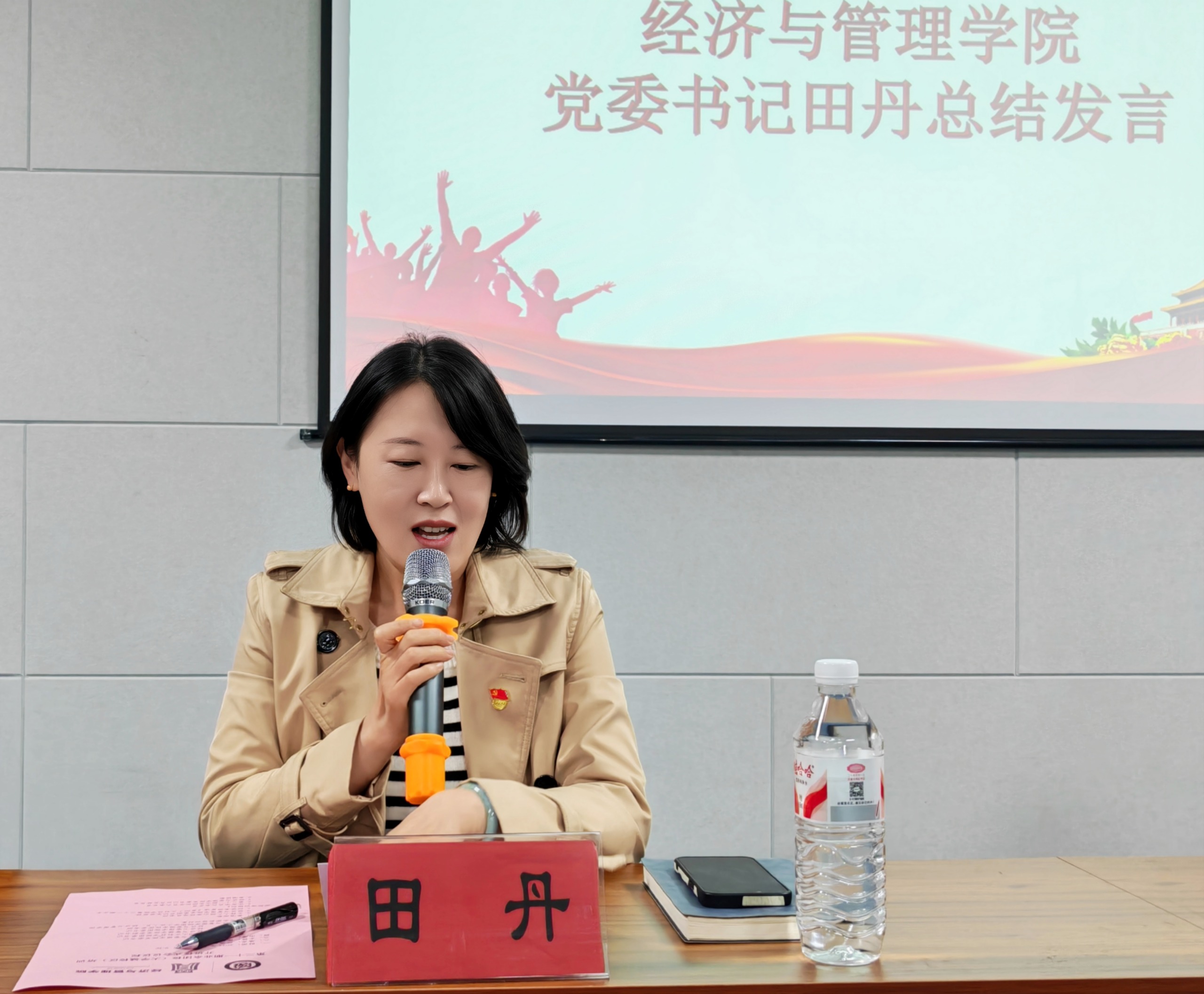 最后,经济与管理学院党委书记田丹作总结发言。田丹书记对本次开班仪式的有序组织和学员们的良好状态给予了充分肯定。她系统阐述了在新时期加强团员教育、办好业余团校的重要意义,并结合当前形势与学院人才培养目标,希望大家带着对共青团的向往与热情,真正成长为知行合一的经管先锋,展现出经管学子勇担重任的时代风貌。
