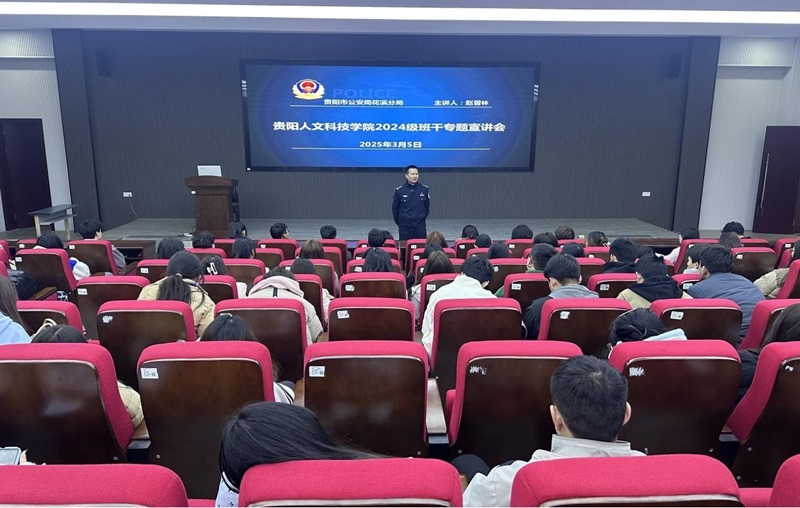 为进一步加强校园安全管理,提升伟德班级干部的安全责任意识与应急处置能力,3月5日,伟德国际1949官网保卫处联合松山派出所在花溪校区会议报告厅共同开展了2024级班干专题宣讲会,松山派出所赵普林副所长作会议主讲。本次宣讲会吸引了花溪校区各学院的 2024 级班级干部踊跃参与,现场气氛热烈,成效显著。