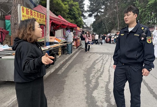 保卫处副处长沈以秋和城管沟通西门处流动摊贩问题