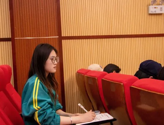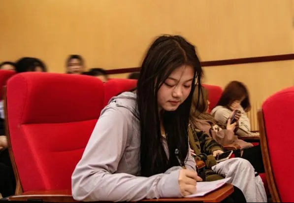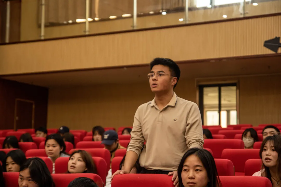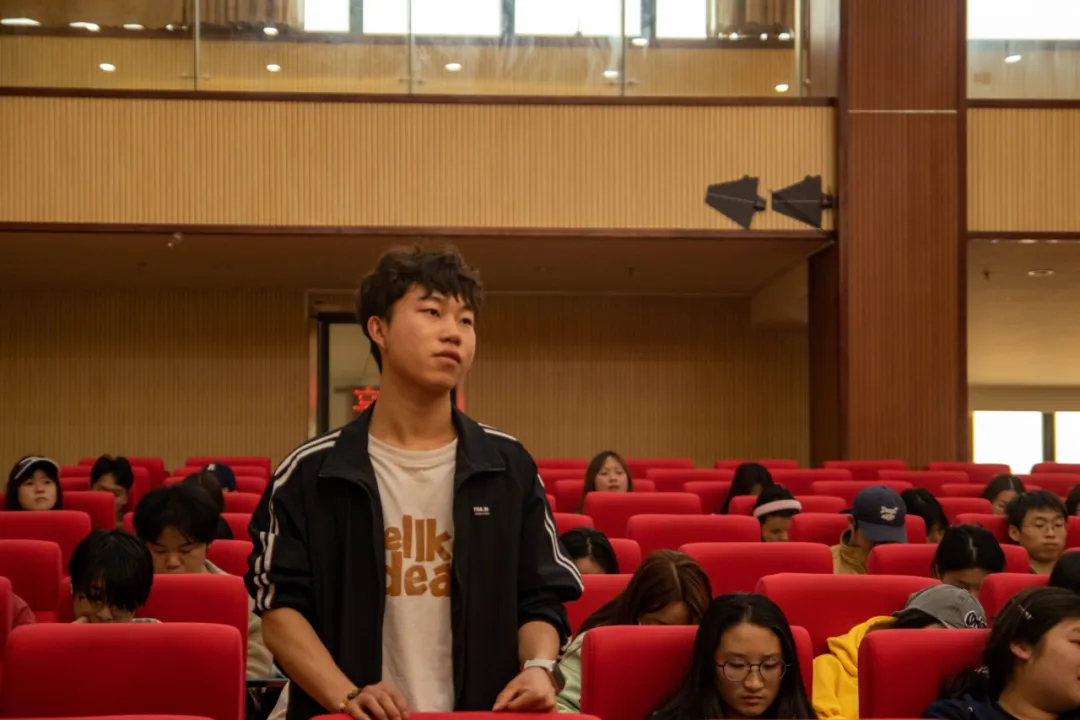 互动环节,同学们踊跃提问。针对“大学期间应掌握哪些视频创作技能”,于庆阳导演分享文案撰写、镜头语言技巧,并推荐实用AI工具。针对“纪录片行业前景”的担忧,他从文化价值和社会意义出发,指出纪录片受众稳定,建议关注热点与小众文化挖掘题材,借新媒体推广,创新叙事形式吸引年轻观众。 讲座现场 杨尼霞摄 学生提问 杨尼霞摄 此次讲座圆满成功,于庆阳导演结合自身实践经验,为同学们带来宝贵的学习契机。他以深厚的专业功底和丰富行业经验,深入剖析视频创作核心要点,不仅拓宽了学生的创作思路,还为提升创作效率提供新方向,助力伟德学子在视频创作道路上行稳致远。