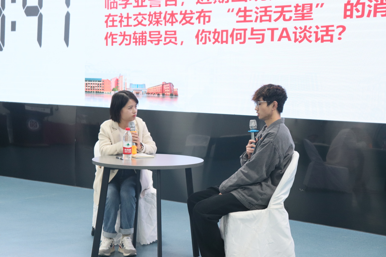 谈心谈话环节以“大学生心理危机干预”为主题进行现场模拟:一名学生因父母离异、家庭经济骤变、多门课程挂科而陷入失眠、食欲不振、对生活失去信心的困境。几位老师依次与学生演员展开谈话,他们耐心倾听,引导其表达内心感受,并共同商讨解决方案——申请助学金、提供勤工助学岗位以缓解经济压力,制定个性化学习计划以提升学业成绩。多位老师围绕同一主题展开谈话,便于现场观摩与后续讨论谈话技巧。经过老师们的耐心分析与引导,学生情绪明显好转,谈话取得良好效果。