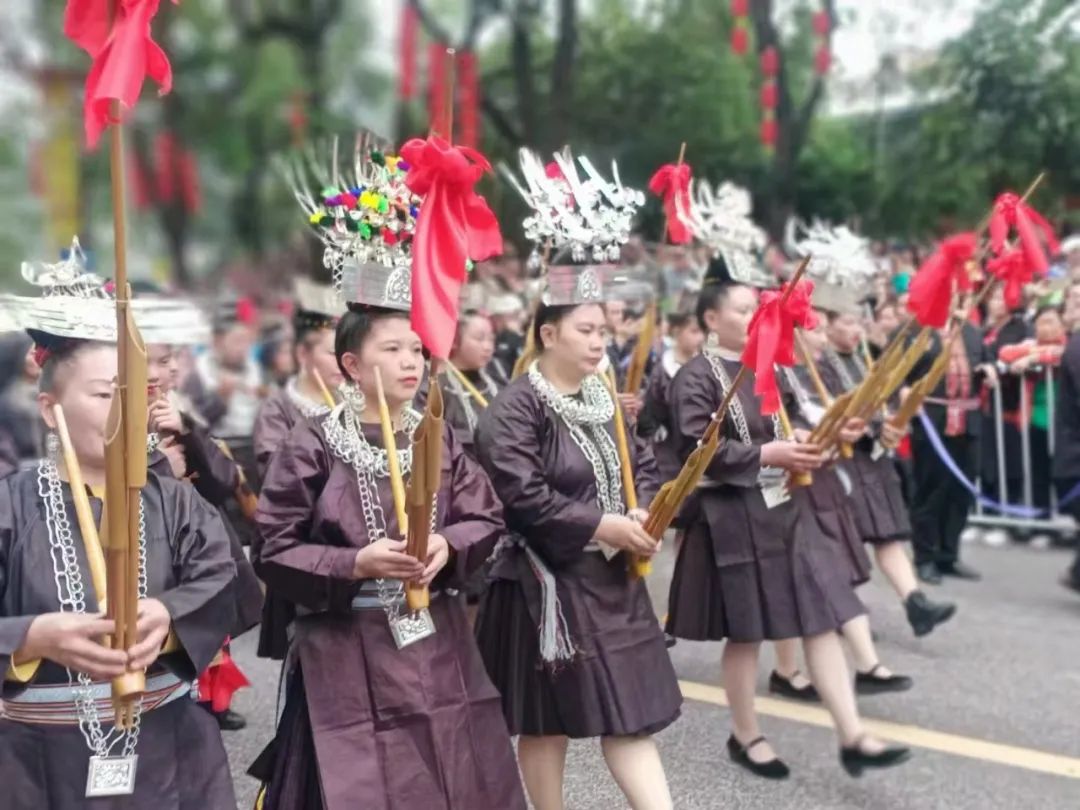 在苗年的广场上,数十人甚至上百人共同跳起芦笙舞,场面蔚为壮观。芦笙的音乐声、舞者的脚步声、观众的欢呼声交织在一起,构成了一幅充满生机与活力的画面。芦笙舞不仅是一种舞蹈表演,更是苗族人民团结一心、传承文化的重要方式,它将苗族的历史、信仰和情感融入其中,代代相传,永不磨灭。