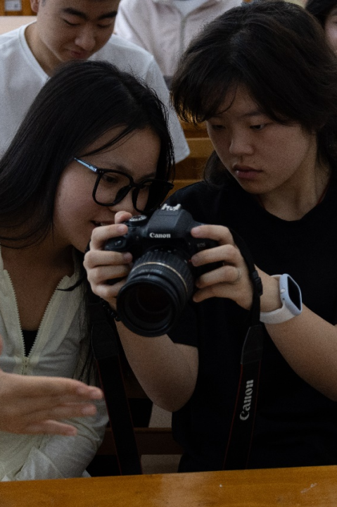 花溪校区3栋教学楼310教室,社长骆江楠以“春日映像”为主题,通过视频动态演示拆解相机操作技巧。现场快门声此起彼伏