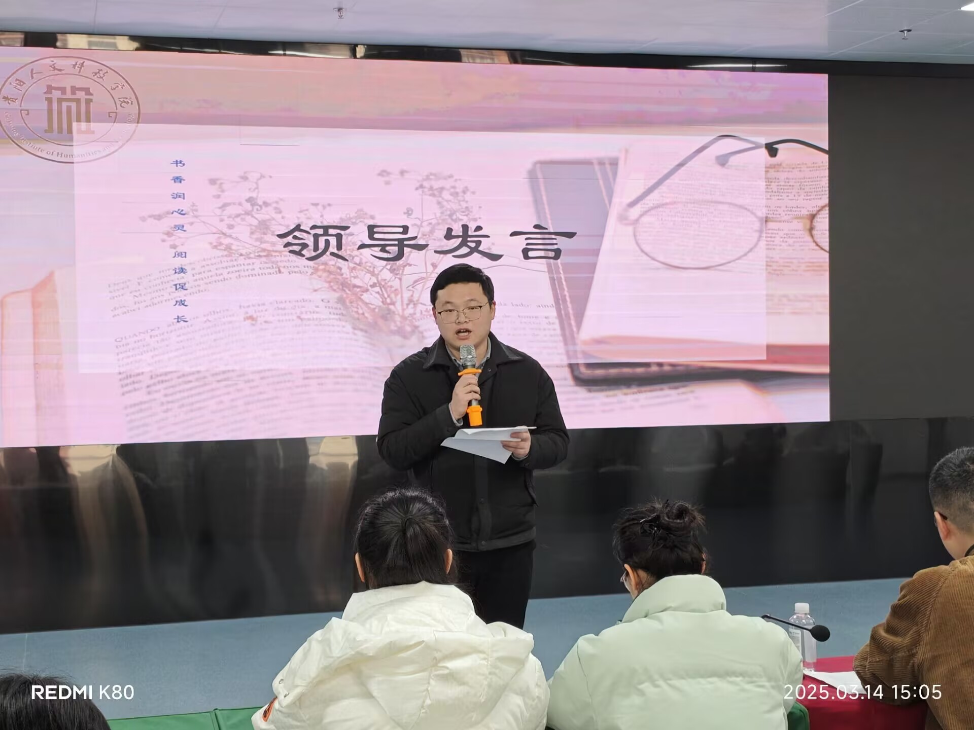 张青松副书记在开幕致辞中强调:"书籍是青年成长的精神食粮",号召学生将阅读融入日常生活。活动由学生会主席王豪主持,通过多元环节展现阅读魅力。
