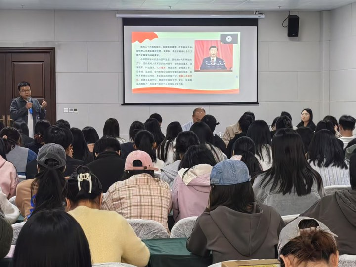 国防教育科副科长田维久在会上进行了征兵动员和政策宣讲。他详细讲解大学生应征入伍的多项措施和优待政策。同时,他还热心解答了同学们关心的应征入伍常见问题,如报名成功后需要做什么、政治考核内容、应征体检项目、体检通知方式以及2025年上半年应征入选是否可以接着参加下半年应征等,鼓励同学们将爱国之心化为报国之行,踊跃参军,薪火相传。