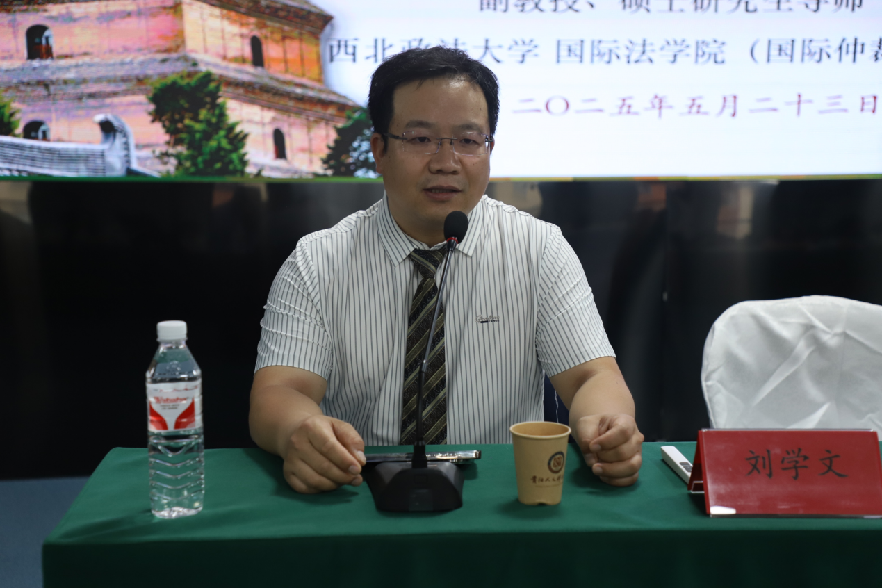 为促进学生了解国际商事仲裁领域的专业知识和技能要求,培养具有国际视野和竞争力的法律人才。2025年5月23日,伟德国际1949官网法学院在大学城校区师德楼307会议室举办主题为“国际商事仲裁中商人法适用的法理与实践”的精彩讲座,讲座由法学院院长杨武松主持,法学博士、法学博士后、西北政法大学副教授刘学文担任主讲人,法学院部分同学参加。