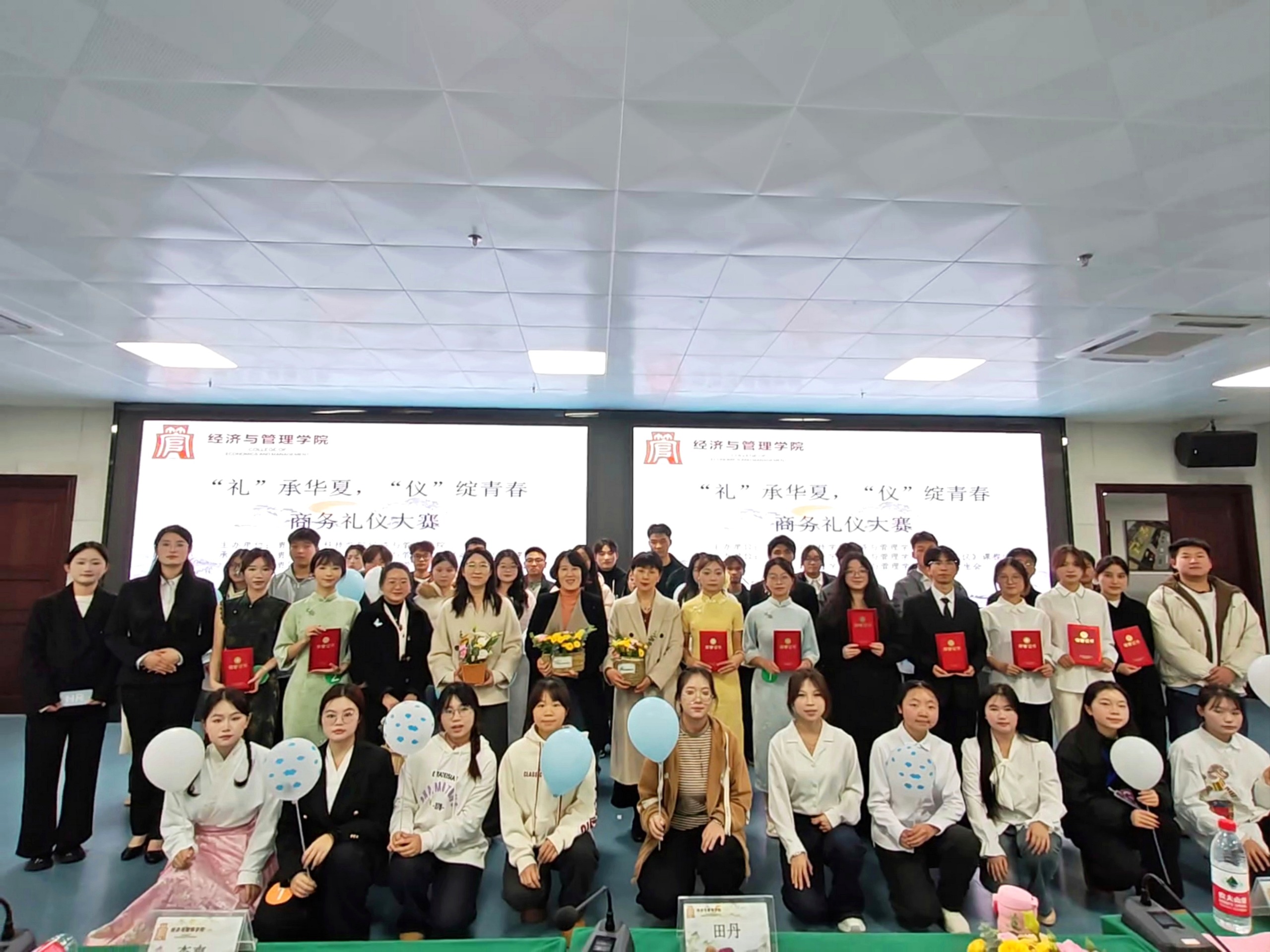为弘扬中华优秀礼仪文化,提升学生礼仪素养与综合实践能力,12月2日,经济与管理学院于师德楼307会议室举办“礼承华夏,仪绽青春”商务礼仪大赛。学院党委书记田丹、学院副院长陈福娣、党委副书记李爽、《商务礼仪》课程组副组长田羽、学院团委、学生会负责人张鹏出席活动,各班学生积极参与。