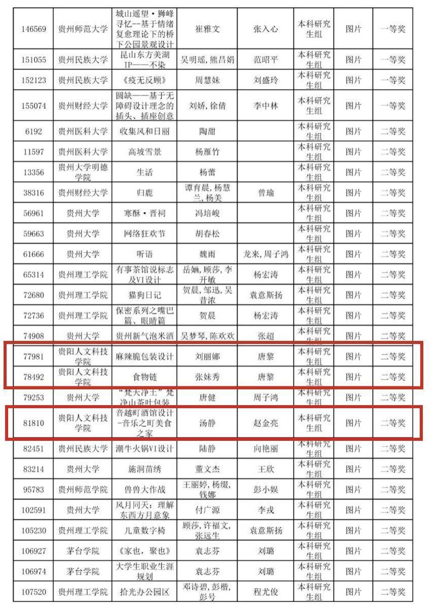 5月7日,第七届米兰设计周高校设计展非命题赛道贵州赛区获奖名单揭晓,经过前期积极筹备,体艺师生在本次比赛中斩获多个奖项,其中一等奖2项、二等奖3项,三等奖7项。