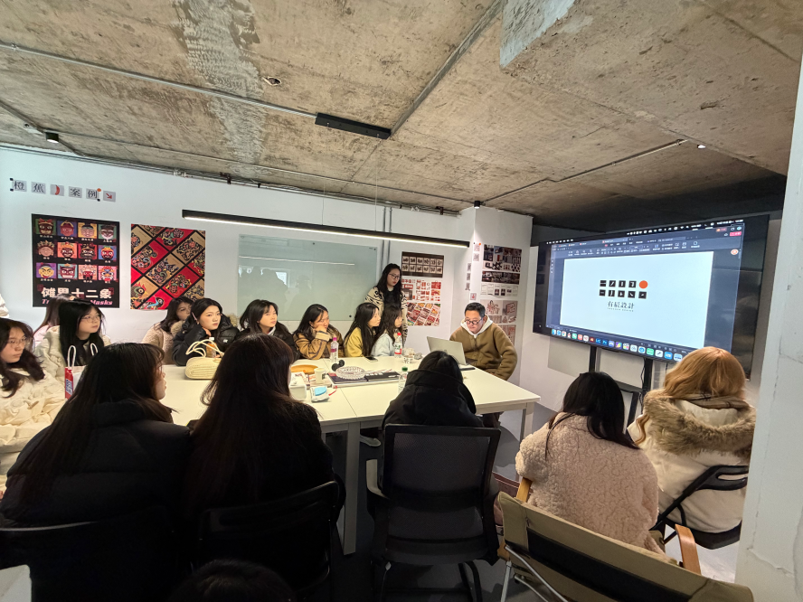 同学们在专业人员引导下参观设计工作区,直观感受从策略分析、创意构思到视觉执行的完整流程,对设计公司运作模式建立真切认知。随后,公司创始人刘先诚带来《产品・品牌・设计的互生关系》专题讲座,从商业设计底层逻辑出发,阐释三者“三位一体”的核心关联,结合成功案例拆解设计的市场价值转化路径,强调系统性思维与市场洞察力的重要性。