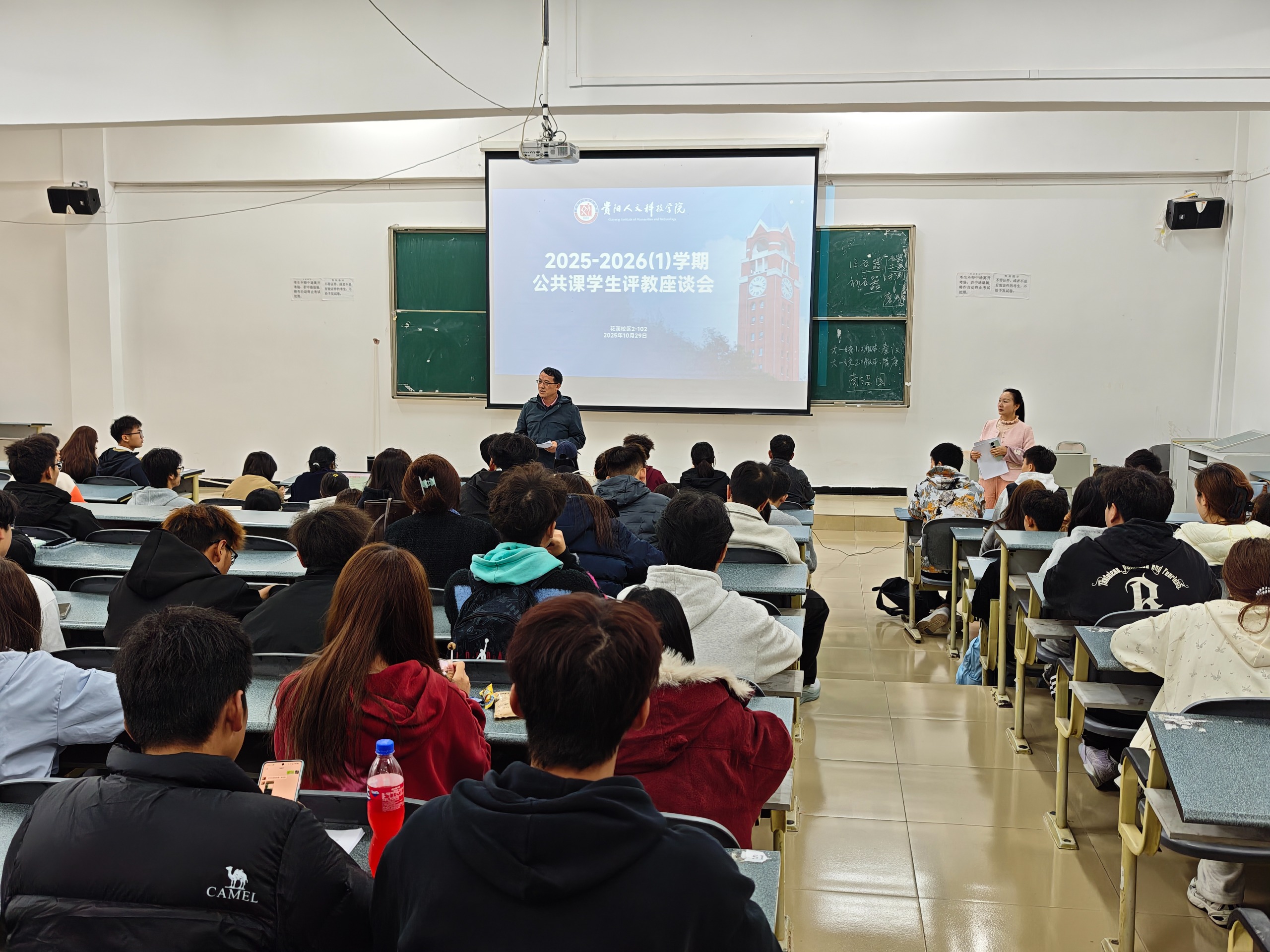 大学城校区座谈会由学院教学秘书陈世涛主持,原理与概论课教研室主任吴鲍兰参加会议。花溪校区座谈会由教学秘书许静主持,学院副院长罗成华、德法与纲要课教研室主任杨豪参加会议。两个校区2024级、2025级各班班长及学习委员共两名代表参加会议。